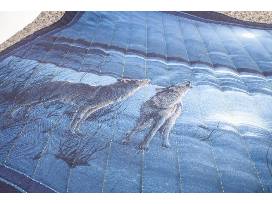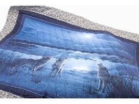 Behold the exquisite craftsmanship of the Amish tradition brought to life in this captivating 41" by 49" hand-stitched wolf wall hanging. Take note of all the details including the wolves and moon outlined.