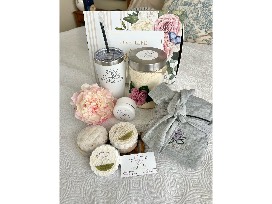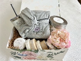 Soak away aches, pains or stress with this luxury bath gift box. Box includes, Lac Lotus bath salts, soaps, lotion and a thermal mug for tea and soft cotton robe.