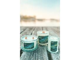 Candle flight includes a bundle of three signature scented candles, all poured into 100% recycled glass.