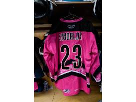 #23 OSKAR LINDBLOM Size 56, San Jose Barracuda Pink in the Rink Specialty Jersey. All proceeds benefit Cancer CAREpoint.
