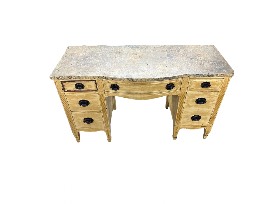 Features: seven drawers, metal claw pulls, faux marble top