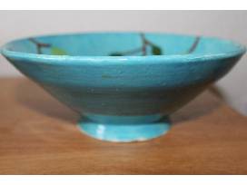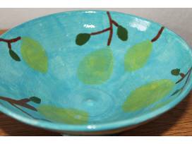 One of a Kind hand painted by JLMS art student, The bowl is decorated with lemon branches. Beautiful turquoise and green accents.