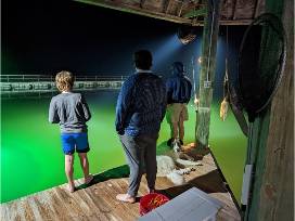 Enjoy breathtaking sunset views and fish under the stars with the green lights and lit backyard pier.