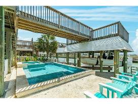 Home has pool and spa, kayaks with launch, ability to rent a golf cart for short drive to the beach, Sea Isle Marina, Restaurant and Store. There are 2 king beds and 4 bunkbeds with trundles. Sleeps 8-10