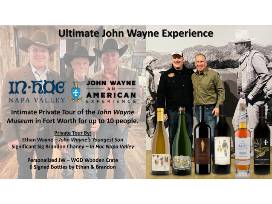 Courtesy of Significant Sig, Brandon Chaney of In Hoc Napa Valley, is offered a personal and intimate tour for 10 of the John Wayne Museum in Fort Worth, TX by Ethan Wayne (John Wayne's son), and a contribution from Brandon's personal cellar of a wooden crate containing 6 signed John Wayne branded wines and whiskeys. This is a first class experience being offered, ideal for any true fans of the Duke!