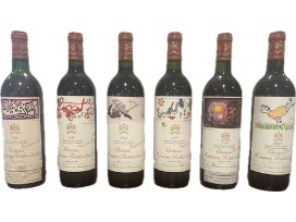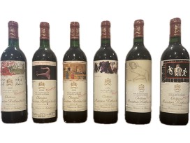 This rare auction lot comprises a full case, one bottle each of the fabled wine from Chateau Mouton Rothschild from the last decade of the 1900s. Located in Pauillac, in the heart of the Medoc, in 1973 Chateau Mouton Rothschild was elevated to the elite rank of Premier Cru, joining Chateau Lafite Rothschild, Chateau LaTour, Chateau Haut Brion and Chateau Margaux. This famous Bordeaux, known for its legendary blackcurrant flavor, is primarily Cabernet Sauvignon, blended with Merlot, Cabernet Franc, and Petit Verdot. Each bottle in this lot was purchased soon after the release of the vintage and stored in a temperature-controlled wine cooler.