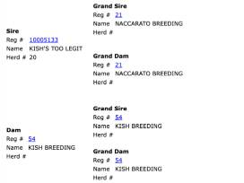 Mr Juicy is a PBR Finals Bull and producing sire. He is a son of Kish's Too Legit. He has 30 sons with Pro Bull Stats.