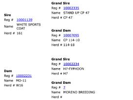 W557 is a daughter of the producing sire, White Sports Coat! Her dam, MO-11, is a daughter of H7-Typoon.