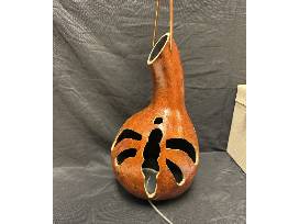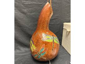 A locally crafted thunder gourd with dragonflies made by Gail Harrington. Perfect for a porch! Comes in a beautiful cloth box with an info sheet. Pick up at Syracuse Stage.