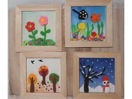 These light clay art pieces are a stunning representation of the four seasons, each depicted with joyful details and a unique color palette. Their vibrant colors capture the essence of spring blossoms, summer ocean, autumn foliage, and winter tranquility in a harmonious display.