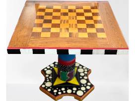 Behold, a masterpiece of youthful ingenuity-a wooden tableau adorned with the kaleidoscopic dreams of kindergarten and 1st graders, transformed into a vibrant chess table that defies convention and enchants the soul. Each stroke of color upon its surface whispers tales of wonder and joy. This chess table transcends its wooden frame, becoming a vessel of inspiration, a reminder that even the smallest hands can create wonders that captivate the soul.