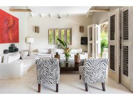 Take a luxurious retreat to the Dominican Republic in a luxe villa for ten people. Enjoy the sparkling blue infinity pool, the large outdoor entertaining area, a full kitchen, and lots of spots to relax and enjoy quality time with friends and family. After you get your fill of relaxing, take an excursion by boat to the best beaches in the area and treat yourself to an authentic Dominican lunch and drinks on the beach. While exploring the serene beaches, you may see beautiful coral reefs and whales breaching in the distance. One week stay for 10 people; 5 bedrooms, 5 bathrooms; Beach boat tour for 10 with an authentic Dominican lunch and oceanside drinks; Pre-trip planning and booking assistance.