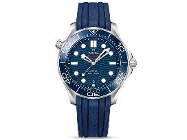 Omega Seamaster Diver 300M Co-Axial Master Chronometer 42mm Blue Steel on Rubber Strap. Since 1993, the Seamaster Professional Diver 300M has enjoyed a legendary following. Today's modern collection has embraced that famous ocean heritage and updated it with OMEGA's best innovation and design. This 42 mm model is crafted from stainless steel and includes a blue ceramic bezel with a white enamel diving scale. The dial is also polished blue ceramic and features laser-engraved waves and a date window at 6 o'clock. The skeleton hands and raised indexes are rhodium-plated and are filled with white Super-LumiNova, while the helium escape valve has been given a conical design. The watch is presented on a BA Blue blue rubber strap and is driven by the OMEGA Master Chronometer Calibre 8800, which can be seen through the sapphire-crystal on the wave-edged caseback.