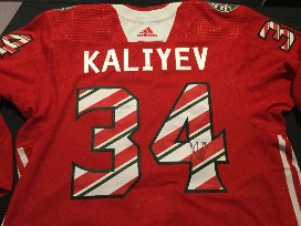 Happy Holidays LA Kings Fans! Bid to win a holiday specialty jersey signed by #34 Arthur Kaliyev. Size 56.