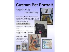 Custom Pet Portrait by Desco Artistry. You provide the images and your pet is captured on a 16x20 canvas in acrylics. The finished canvas is signed by the artist and delivered locally. Valid for 12 months.