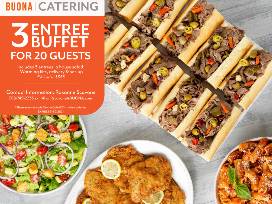 Have your next football or graduation party catered by Buona Beef (20 ppl) and Rainbow Ice Cream ($30 gift card). Includes 3 entrees, a house salad,