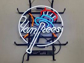 This package includes a Mickey Mantle #7 Wooden Wall Art signed by Barnwood Sports MLB-Licensed Artist Tim Kuncis and a New York Yankees Baseball 20"x16" Neon Lamp Light Sign Beer Wall Decor Bar