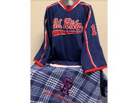 Take home this Game Used Navy Blue St. Rita Hockey Jersey. This jersey was being worn during the 2010 and 2012 State Championship runs. This package also includes a SR Stadium blanket to keep you warm at the rink!