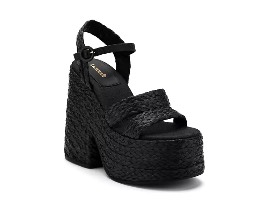 0Larroudé Carmen 145mm platform raffia sandals - size 7.5, black.
