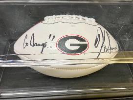 Get TWO items signed by UGA Coach Kirby Smart - a signed football in a case and a signed 8x10 championship photo in a black frame. It's a WIN WIN!