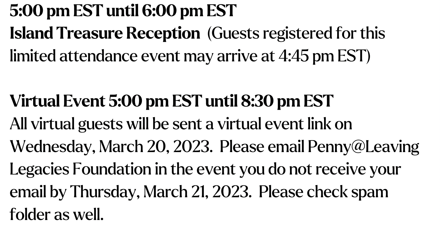 I am not purchasing tickets, but would like to register to support Leaving Legacies!