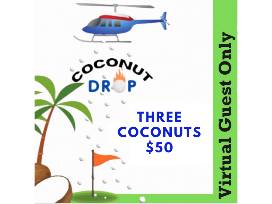 VIRTUAL SUPPORTERS. VIRTUAL GUESTS WILL HAVE THEIR "COCONUT" NUMBER(S) EMAILED TO THEM BEFORE THE DROP. THE DROP WILL BE LIVE-STREAMED FOR ALL VIRTUAL GUESTS ATTENDING THE EVENT. IN THE EVENT A VIRTUAL SUPPORTER HAS THE LUCKY COCONUT (GOLF BALL) THEY WILL BE NOTIFIED VIA EMAIL.