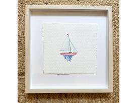 Original framed 9x9 watercolor sailboat painting by local artist Joe Nelson.