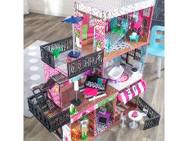 KidKraft Brooklyn's Loft Wooden Dollhouse with 25-Piece Accessory Set, Lights and Sounds, Measures 41.75" x 18.25" x 41.75" Room for 12' dolls to play. Detailed fire escape and balcony, Includes extensive accessory pack, Sturdy wood construction, Packaged with step-by-step instructions, Magnetic dress form with outfits, 3 levels, 6 rooms and 2 outdoor areas. New in box, Assembly required.
