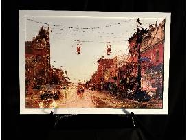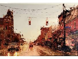 Part of the Wet Windshield series, this digitally enhanced photo uses rain on a car's windshield as a natural filter. This 24" x 36" framed piece transforms a familiar view of Liberty Avenue in Bloomfield into a unique and evocative piece of art, capturing the beauty of raindrops on glass.