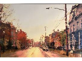 Part of the Wet Windshield series, this digitally enhanced photo uses rain on a car's windshield as a natural filter. This 24" x 36" framed piece transforms a familiar view on Western Avenue into a unique and evocative piece of art, capturing the beauty of raindrops on glass.
