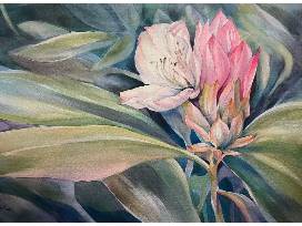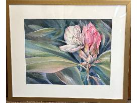 In this 23" x 19" piece. the artist captures the quiet elegance of a rhododendron's first bloom, rendered in soft, luminous watercolor. This intimate portrayal of nature's renewal speaks to the resilience and beauty of new beginnings. With each petal delicately emerging, the piece invites viewers to reflect on the promise of growth and the gentle unfolding of hope. A serene and inspiring addition to any collection.