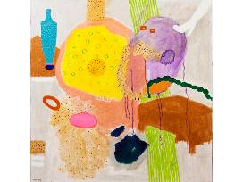 A lively and textured abstract that celebrates renewal through playful form and color. The 48" x 48" painting evokes a sense of fresh energy and creative possibility-an expressive and uplifting piece for any collection.