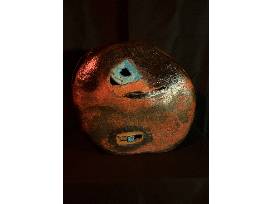 A captivating 15" x 18" ceramic sculpture that reimagines the ancient myth with modern artistry. Featuring a singular, unblinking eye, the piece draws viewers into its depths with an enigmatic allure. The textured surface, reminiscent of rugged mythical terrain, blends earthy tones to create a striking visual impact. This sculpture stands as a testament to Cooke's ability to merge storytelling with art, inviting observers to ponder the timeless nature of human curiosity.