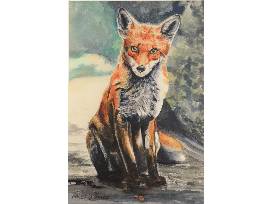 This giclee print beautifully captures the essence of nature's inquisitiveness through the eyes of a fox. The 13" x 19" artwork features a vividly detailed fox, sitting upright with its gaze fixed forward, exuding an air of curiosity and alertness. The fox's fur is rendered in rich hues of orange, red, and brown, with intricate brushstrokes that highlight the texture and depth of its coat. The background is a blend of soft, muted colors that contrast beautifully with the vibrant subject, creating a harmonious balance between the foreground and background. This print not only showcases Finch's mastery in capturing wildlife but also evokes a sense of wonder and connection to the natural world.