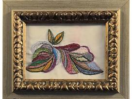This stunning tapestry pays homage to the intricate and ornate style of William Morris. This masterpiece, crafted on fine broadcloth, features a vibrant array of flowing lines and shapes in rich autumnal hues. The detailed stitching and tapestry techniques bring the design to life, creating a harmonious and dynamic composition that captures the essence of the season. The ornate gold frame, adorned with intricate carvings, adds an elegant touch, enhancing the visual impact of the artwork. This 8.5" x 11" piece is a testament to the artists' skill and creativity, inviting viewers to immerse themselves in its rich, colorful world.