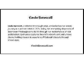 Linda Barnicott's greeting cards are a delightful collection that brings the charm and spirit of Pittsburgh to life. The two sets of 10 cards, features beautifully rendered cityscapes, showcasing iconic landmarks and hidden gems through Barnicott's artistic lens. The vibrant scenes capture the essence of Pittsburgh's bustling streets, serene riversides, and historic architecture. On the back of each card, you'll find a captivating story about the painting, offering a glimpse into the inspiration and narrative behind the artwork. These cards are perfect for sharing a piece of Pittsburgh's beauty with friends and loved ones, making every message a heartfelt connection to the city's rich heritage.