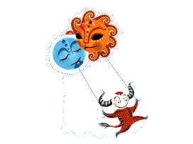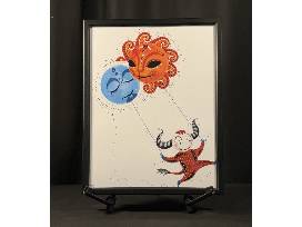 Monstre du Ciel: The Sky Monster has the great responsibility of hoisting the sun and moon into the sky at the changing of the hour. Luckily he loves his job and skips across the stars to do it! Part of a series entitled PETITS MONSTRES (Little Monsters), this 11" x 14" framed print was Inspired by folk art from the artist's native city of New Orleans.