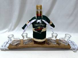 Fit for any whiskey connoisseur, bid now on this one-of-a-kind Minnesota Wild branded whiskey flight handcrafted by RoughSanded Woodworking and signed by our 2023-24 Captains, Jared Spurgeon, Marcus Foligno, and Kirill Kaprizov. Certificate of authenticity available upon request. Must be 21+ to bid, local pickup only.