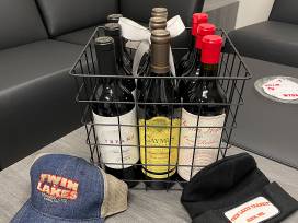 Nine (9) total bottles of red in a basket (Emily's favorite!)