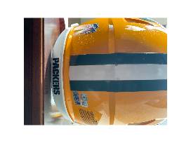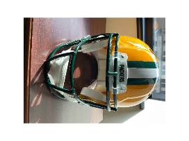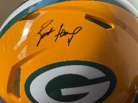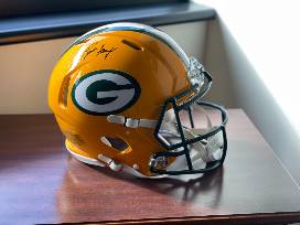 Green Bay Packers helmet autographed by three-time NFL MVP, Super Bowl champion, and NFL Hall of Famer Brett Favre.