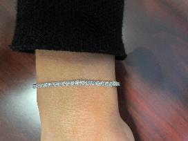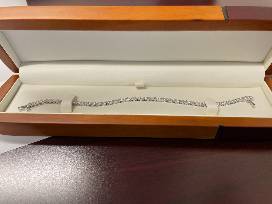 The mounting is a high polished heavy casing with four-prong individual links measuring seven inches in length, 2.8 millimeters wide with a hidden box clasp and fold over safety, 8.83 grams.