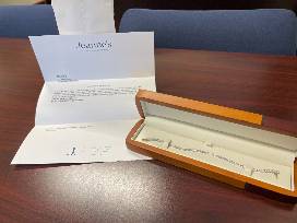 The diamonds are each fine proportion, H-G color, VS2-SI1 clarity equaling a total weight of 3.98 carat.
