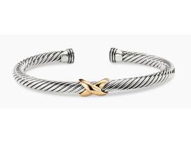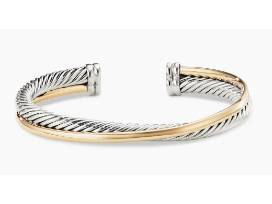- Crossover two-row cuff bracelet (Sterling silver with 18-karat yellow gold, 5mm)