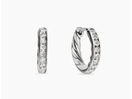- Sculpted cable huggie hoop earrings (Sterling silver with diamonds, 13mm)