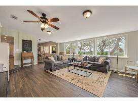 Outdoors there is tons of shady oak trees as well as a fire pit surround with seating and a picnic table. The huge back yard is also equipped with beautiful landscaping, horseshoes, and washers. There is also a brand new hot tub! This home is perfect for relaxing, but with just a 15 minute drive into Wimberley or Canyon Lake grocery stores, shopping, and dining options are not far away.