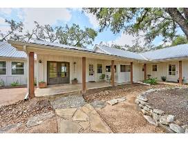 This recently renovated contemporary rustic farmhouse is situated on 17 private acres overlooking an expansive hill country panorama with views of the Devil's Backbone. Gentle breezes, the sounds of nature, and beautiful oak trees will soothe your senses. A large century oak tree estimated to be 250 years old, sits majestically on the edge of a large field near the house. An old pole barn and the original outhouse remind you of the history of this special property.