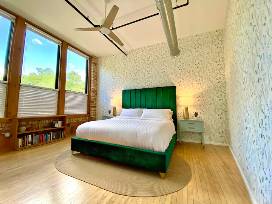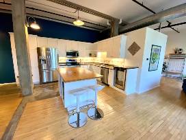 This 1850 sq ft loft sleeps 4-6 and features massive seating and dining areas with Restoration Hardware furniture, a sleeper sofa, and a 65" smart Samsung tv and sound bar. Two large bedrooms have been outfitted with Nest Bedding king mattresses and pillows, making the loft a great couples getaway or plenty of space for a family.