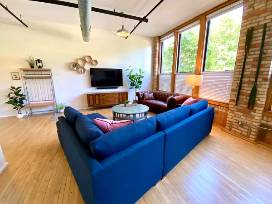 Wake up in this sun drenched and charming lake loft, located in South Haven's historic 1913 schoolhouse! This relaxing retreat with soaring ceilings is steps to Lake Michigan, Phoenix Street shopping, and the farmers market. Spend a day lounging on the beach or working up a sweat on the trail, and come back to a soothing soak in the hot tub and dinner in the fully-equipped cook's kitchen.