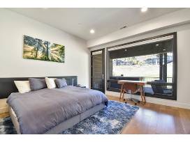 Indulge in the ultimate comfort and relaxation in the top-floor guest bedrooms. The first bedroom features a spacious king bed, a cozy fireplace, and a private bathroom, while the second bedroom boasts 2 twin beds, a twin Murphy bed, and a private bathroom. Both enjoy access to the second-story deck, where guests can soak in the delightful mountain views from a private hot tub or sit around the lovely fire table to sip apres ski drinks overlooking the golf course below (or sledding hills in the winter) or soak while watching your favorite show on the outdoor TV.