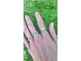 The Emerald Curve Ring features a stunning green emerald and a unique curved shape. This beauty is perfect on its own, or stacked with others... we are feeling green with envy!